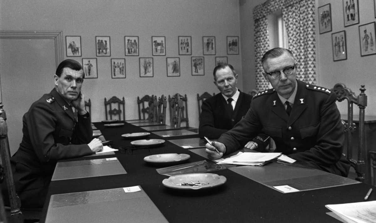 Överste Ebbe Gyllenstierna informerar media om nya riktlinjer för regementet. Ledarstaben skall göra regementet mer kostnadsmedvetna.