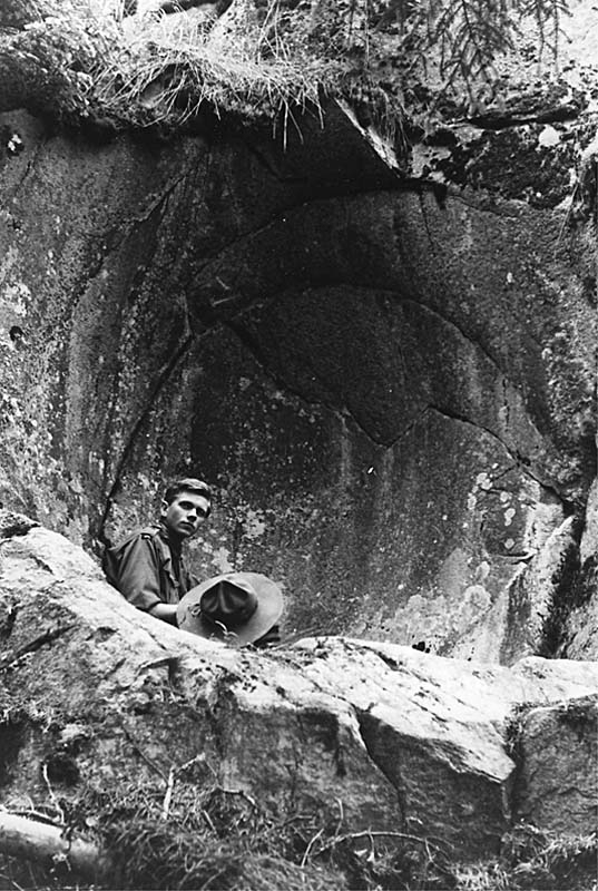 Jättegryta ("jättestol"). Bergvattnets västra strand.