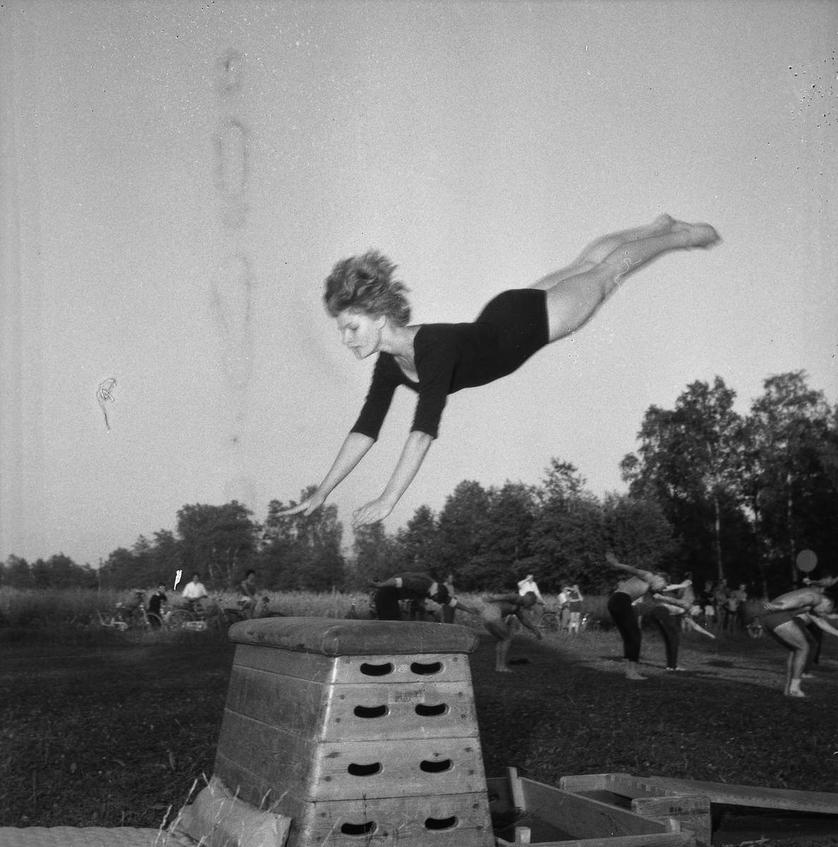 Titel: Spänst folk i farten vid Hästhagen. 10 juli 1959.