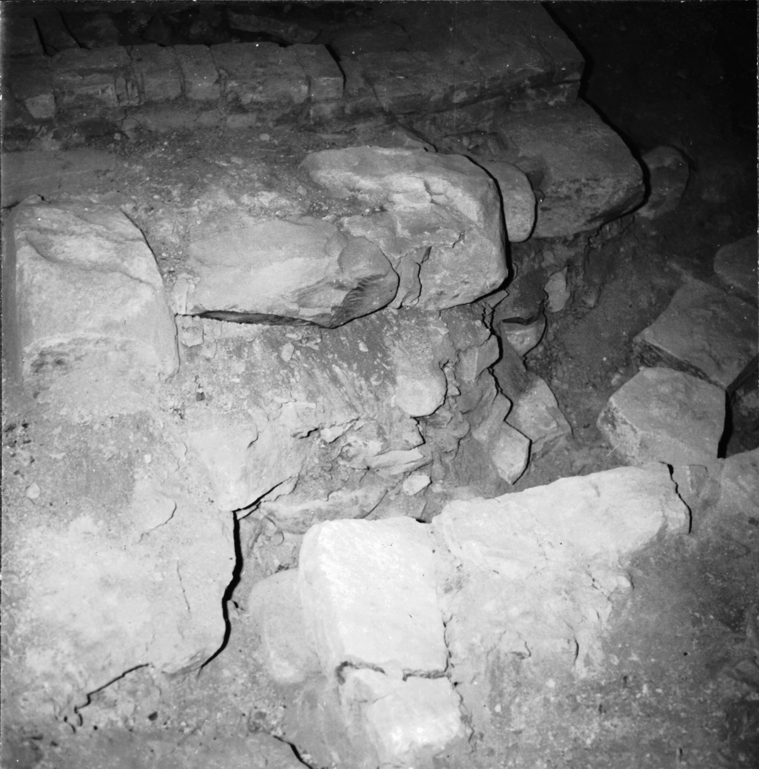 Utgrävning. Det romanska korets nordöstra hörn från väster.
