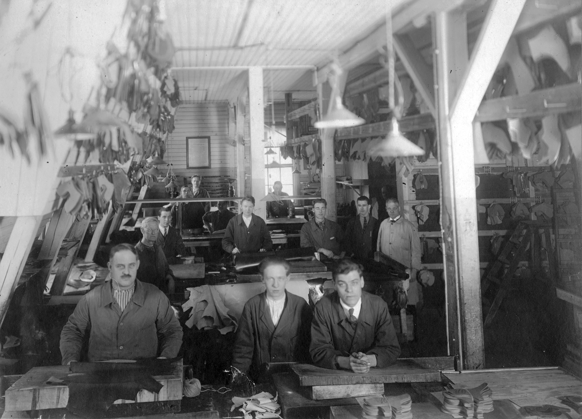 Titel: Skofabriken Svea, interiör, skofabriksarbetare.