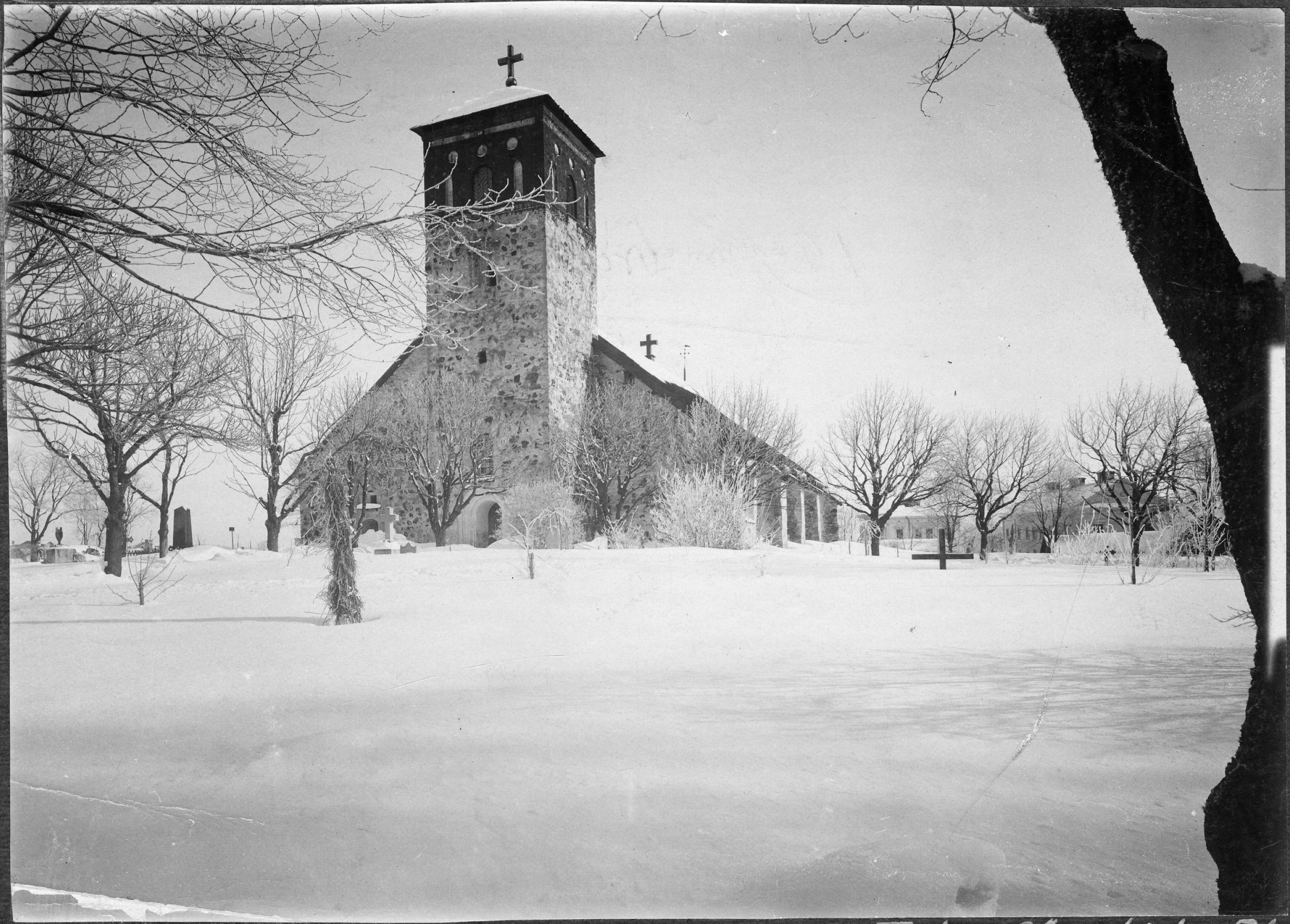 Kyrkan med torn från väst. Treskeppig kyrka. Foto för tidningen "Hemmet", årgång 1901.