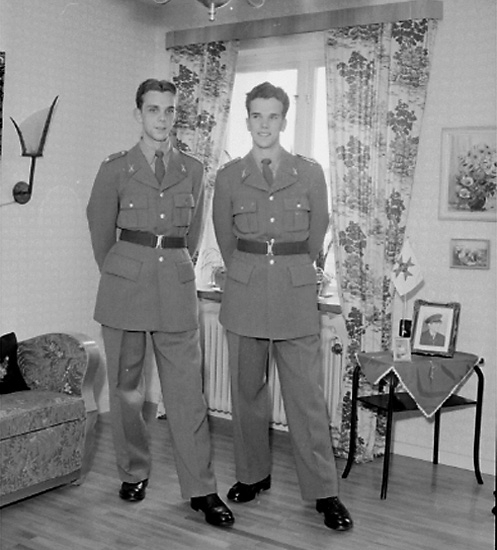 Rumsinteriör, två soldater.