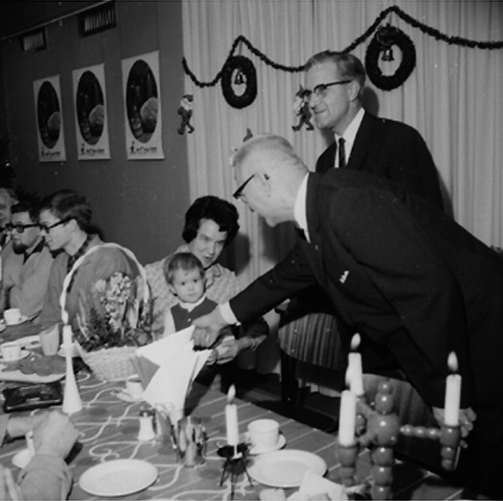 Avskedsfest för L.C. chefen Torsten Östergren, interiör, grupp.