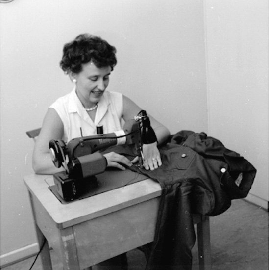 Interiör, en kvinna vid symaskinen.