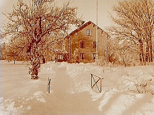 Sörby gård. Två och en halvvånings bostadshus med förstubro med snickarglädje.