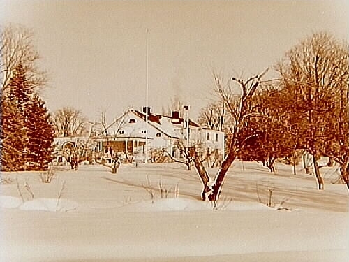 Sörby Säteri, envånings bostadshus med inredd vind, två flygelbyggnader. Vinterbild.