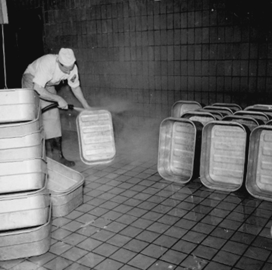 Konsum, charkuteriavdelningen, interiör, backtvätt, en man.