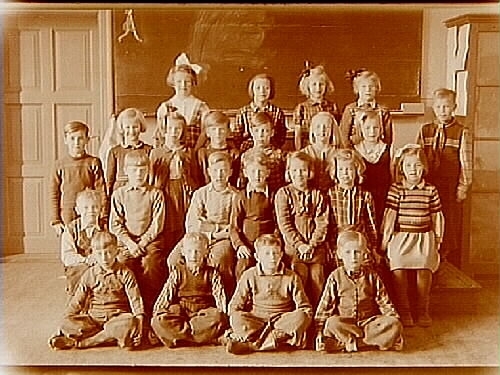 Vasaskolan, klassrumsinteriör, 11 flickor och 12 pojkar, lärarinna fru Lilly Lund, klass 2, sal 8.