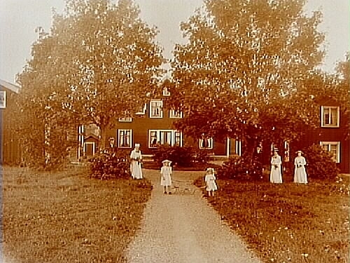 Berga gård, en och en halvvånings bostadshus med takhuv, 2 st. flygelbyggnader.