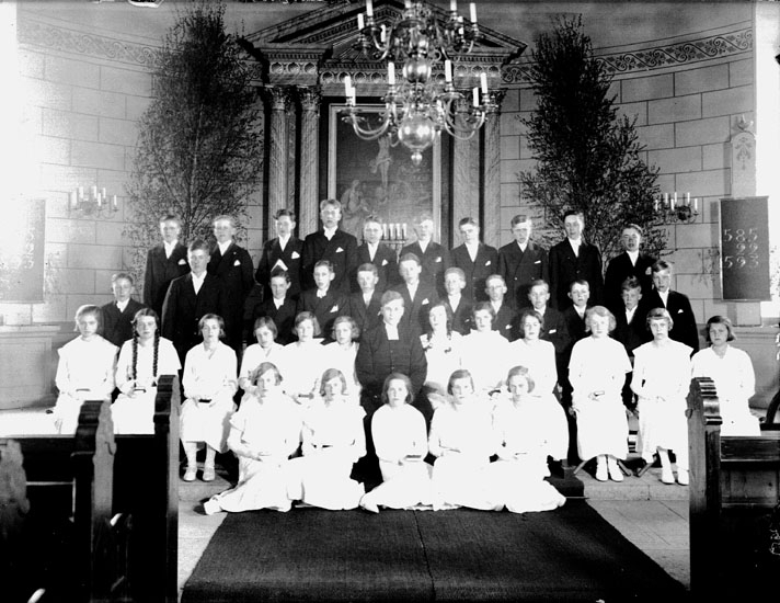 Konfirmander, 17 flickor, 22 pojkar och en präst.