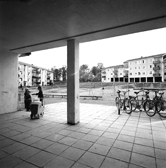 Titel: Bostadsområde. Lekande barn. Baronbackarna, Örebro. Arkitekt Alm Ekholm & White