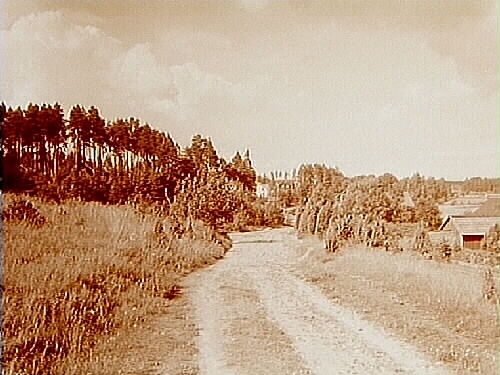 Utsikt, motiv från Åsen mot Tallåsen, väg och bostadshusen till vänster.