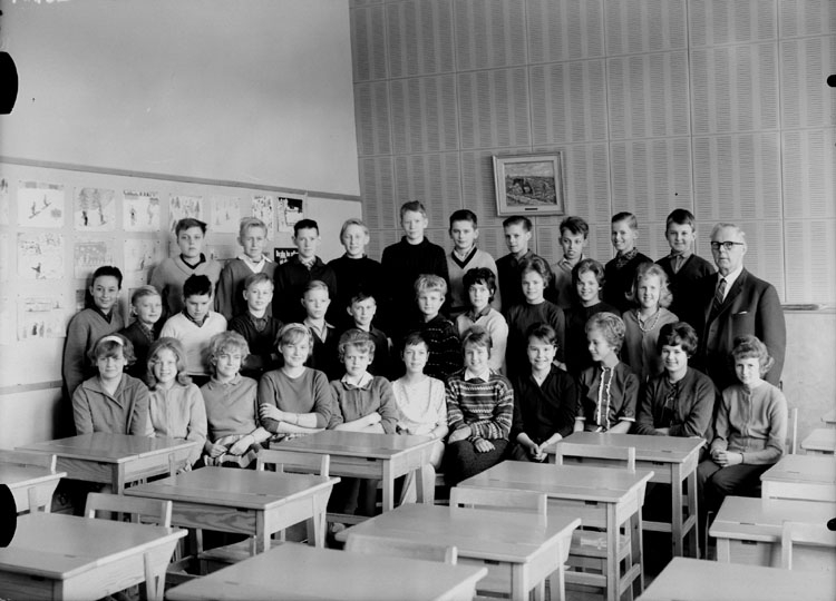 Vasaskolan, klassrumsinteriör, 32 skolbarn med lärare David Wählby.