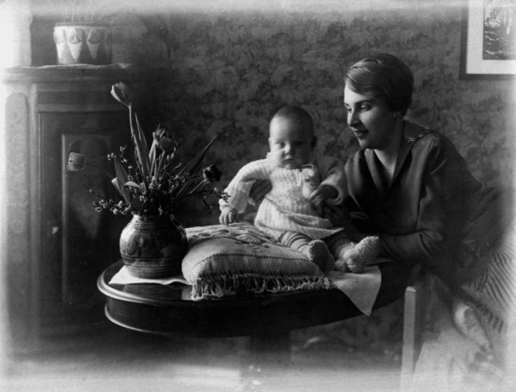 Rumsinteriör, en kvinna och en baby.
