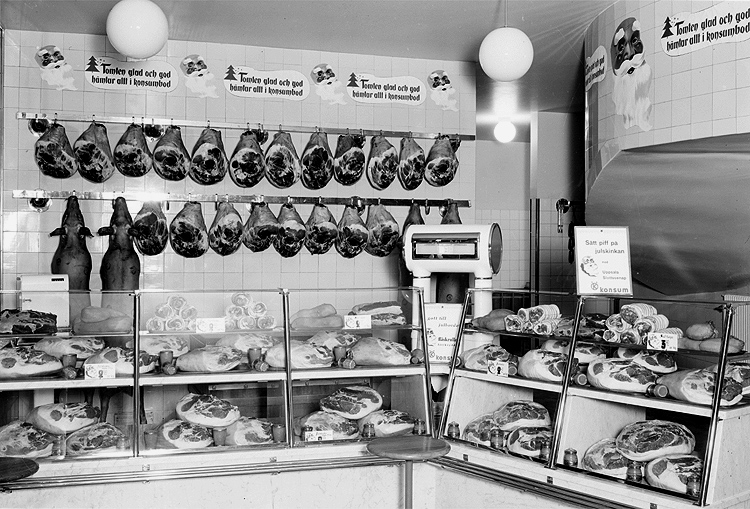 Konsum, affärsinteriör, charkuteriavdelningen.