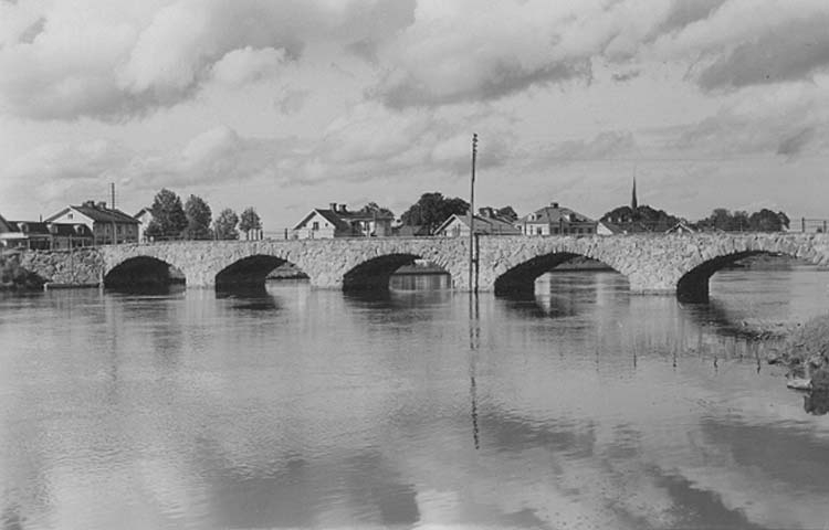 Motiv från Åtorp, bostadshus. Bron över Letälven.