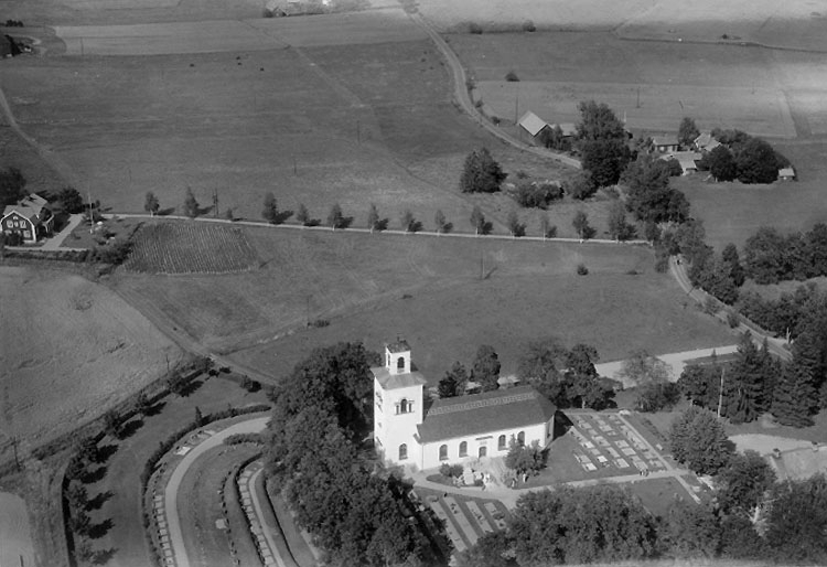 Flygfoto över Vintrosa kyrka.