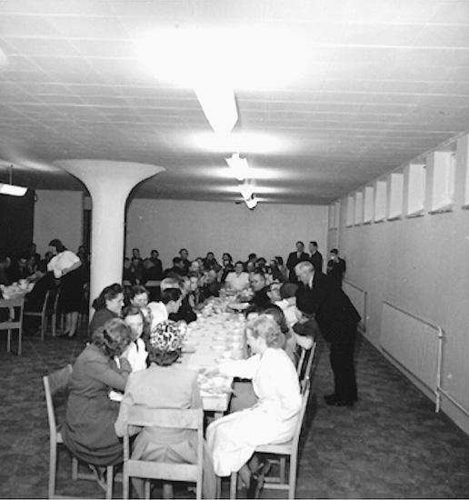 Interiör, grupp vid bordet, högtid.