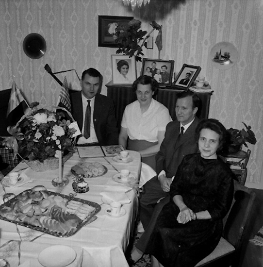 Rumsinteriör, släktgrupp fyra personer.
