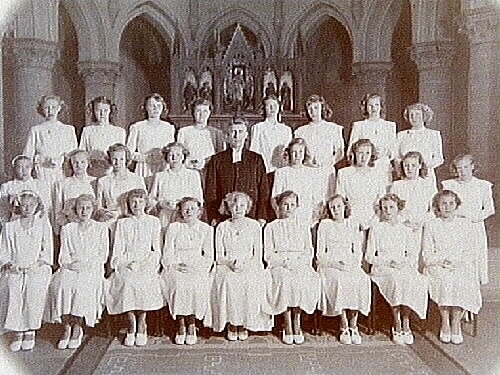 25 konfirmander, 25 flickor och pastor Inge Lagerstedt.