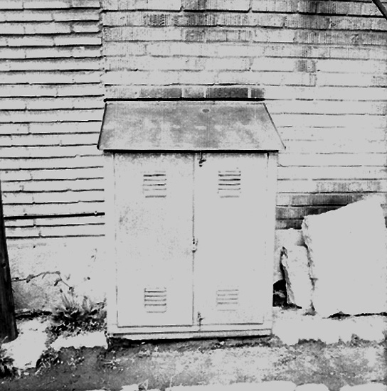 Titel: Kvarntorps Gasol, byggnaden, skåp för gasolflaskor. Skifferolje AB.