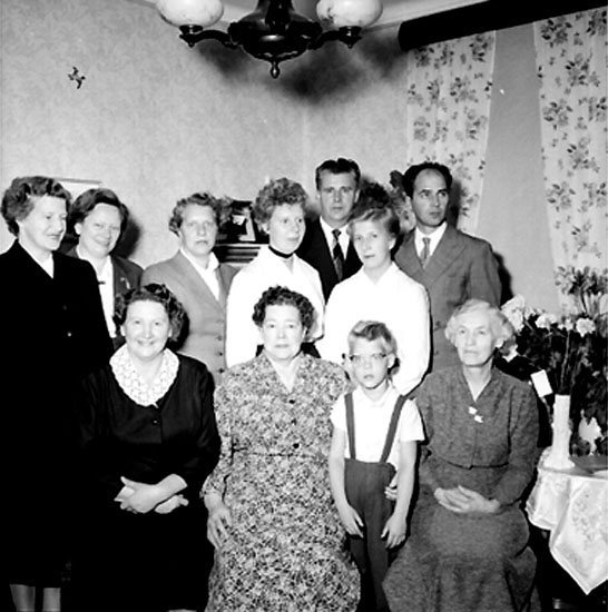 Rumsinteriör, släktgrupp 11 personer, högtid.