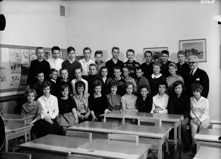 Engelbrektsskolan, klassrumsinteriör, 32 skolbarn med lärare Harry Hallmén.