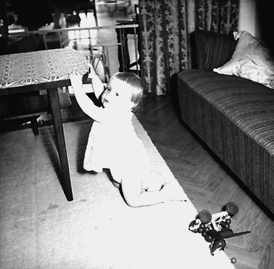 Titel: Rumsinteriör, en liten flicka. Bigge Holmberg