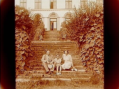 Karlslunds herrgård, familjen, 3 personer på trappan.