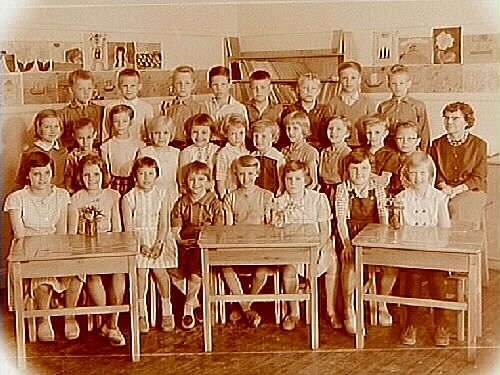 27 skolbarn och lärarinna fröken Karin Ohlsson.