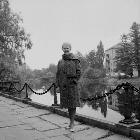 En kvinna. Kläderna från Konsum Damkonfektion.