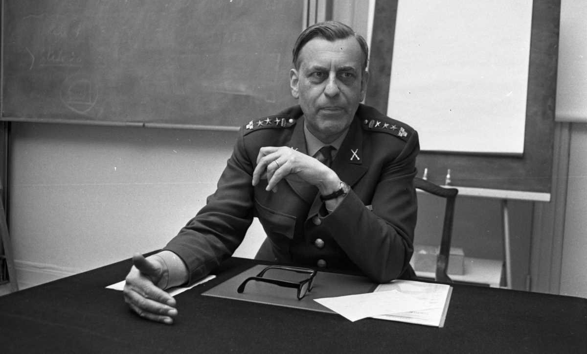 Överste Ebbe Gyllenstierna informerar media om nya riktlinjer för regementet. Ledarstaben skall göra regementet mer kostnadsmedvetna.