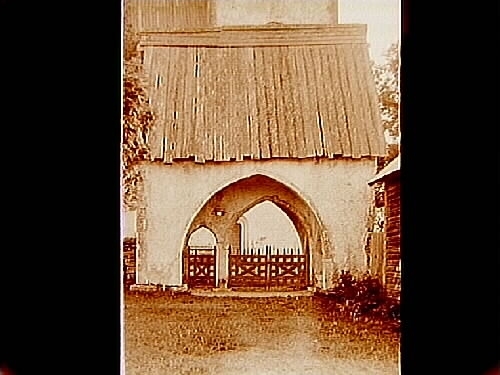 Norrlanda kyrka, kyrkans norra kyrkogårdsportal med körport och stiglucka.