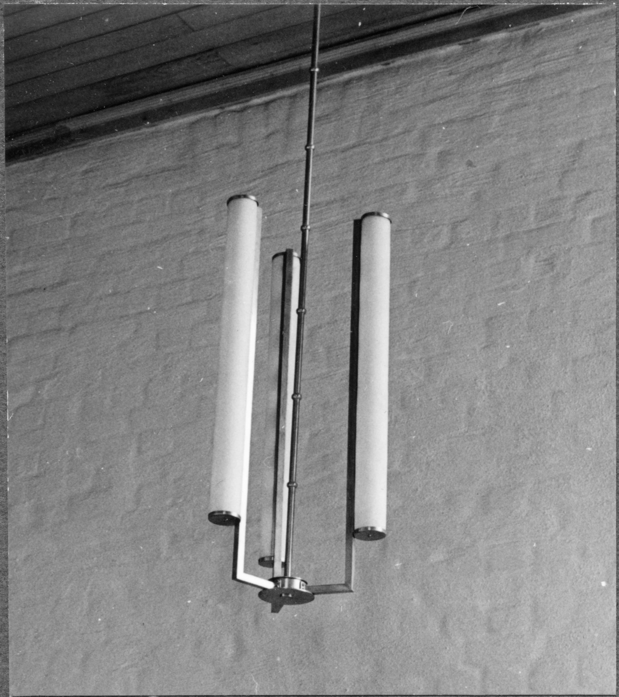 Belysningsarmatur av mässing med lysämnesrör. Skänkt av Spånga köpmannaförening 1939