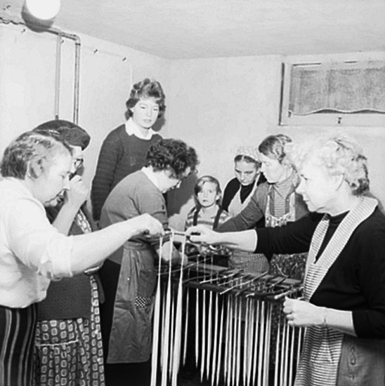 Ljusstöpning, interiör, kvinnor och barn.