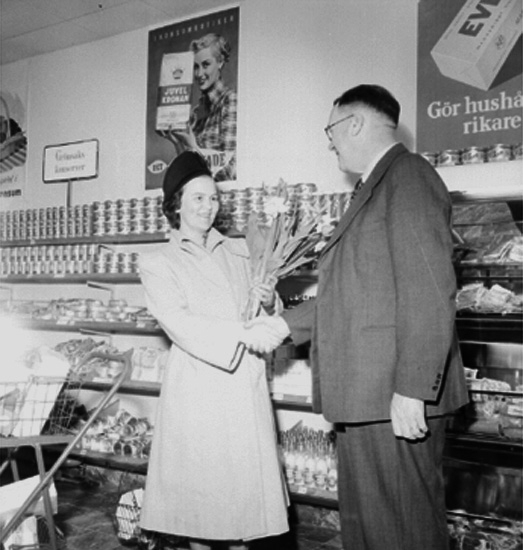 Titel: Konsum snabbköp, affärsinteriör, kunder och personal.