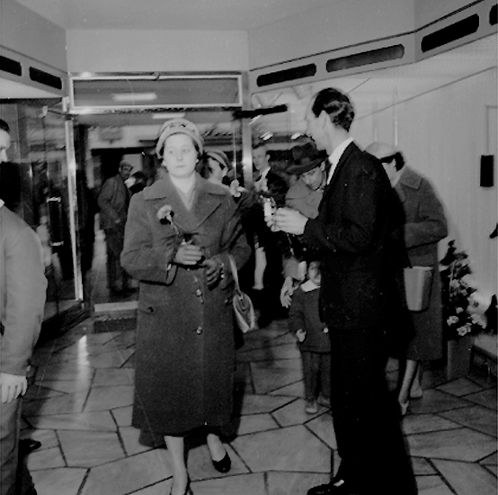 Titel: Oscarias nya affär, skoaffärsinteriör, kunder och personal.