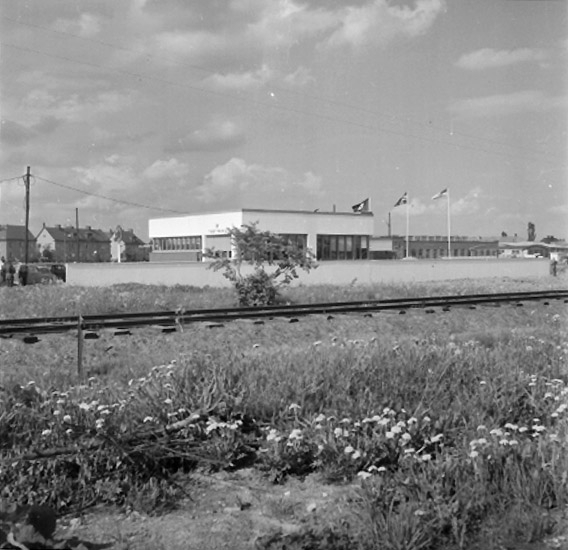 Pappersbruksjärnvägen i förgrunden.