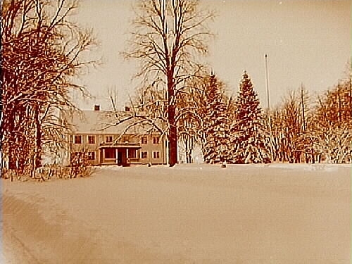 Tvåvånings bostadshus med veranda och balkong, två och en halvvånings flygelbyggnader och ekonomibyggnader.