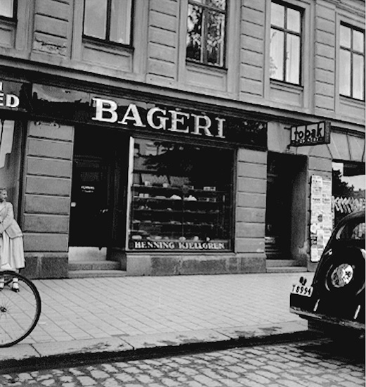 Henning Kjellgrens Bageri, exteriör, skyltfönster.