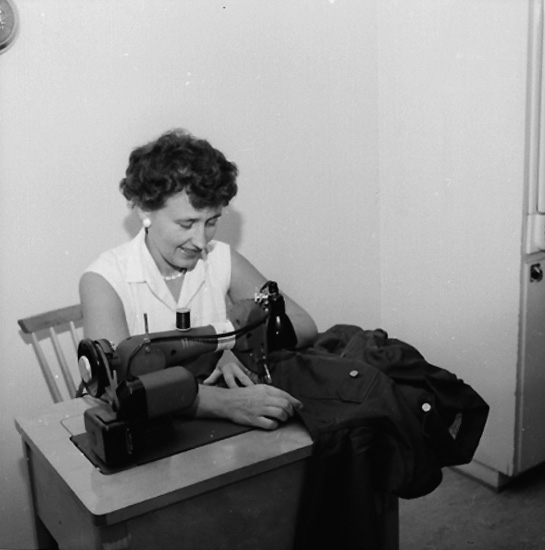 Interiör, en kvinna vid symaskinen.