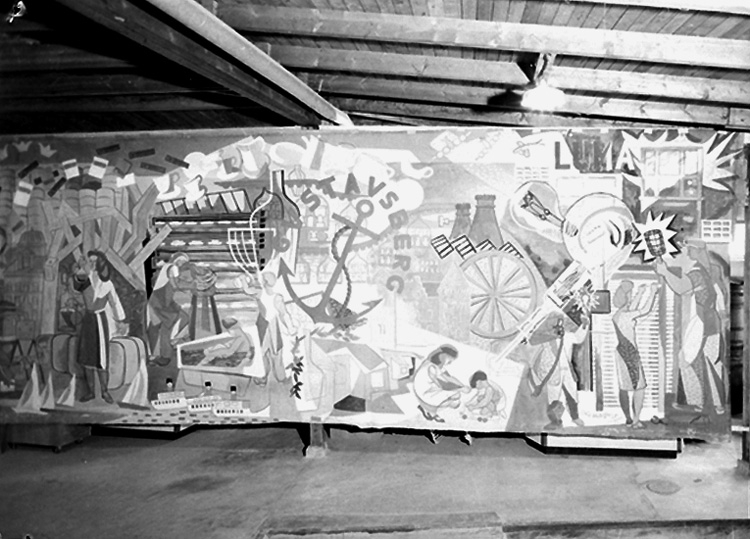 Restaurang Stortorget, interiör av konferenssalen, väggmålning.