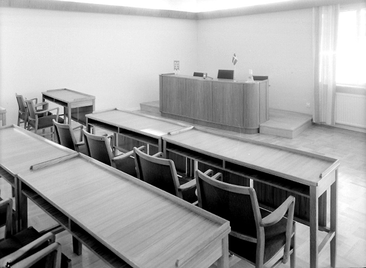 Kommunhuset i Ramsberg, interiör, sal med bänkar.