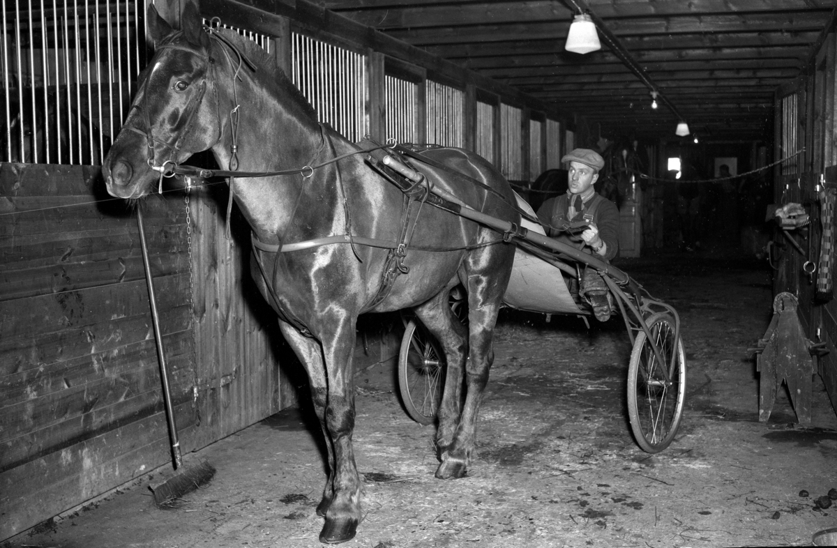 På bilden sitter Bengt Nilsson i en sulky bakom en häst.