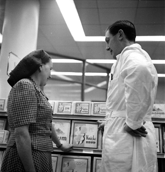 Konsum snabbköp, affärsinteriör, kunder och personal.