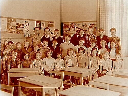 29 skolbarn och lärarinna fröken Britta Lindgren.
