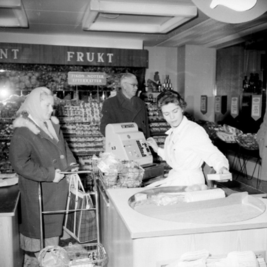 Titel: Konsum Ströget, affärsinteriör, kunder och personal.