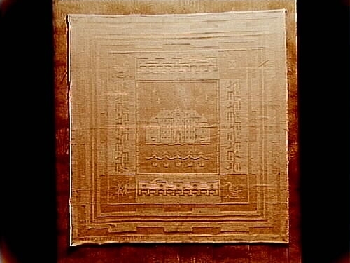 Linneduk till landshövdingskan Hasselrots 60 årsdag. Motiv: Örebro Slott.