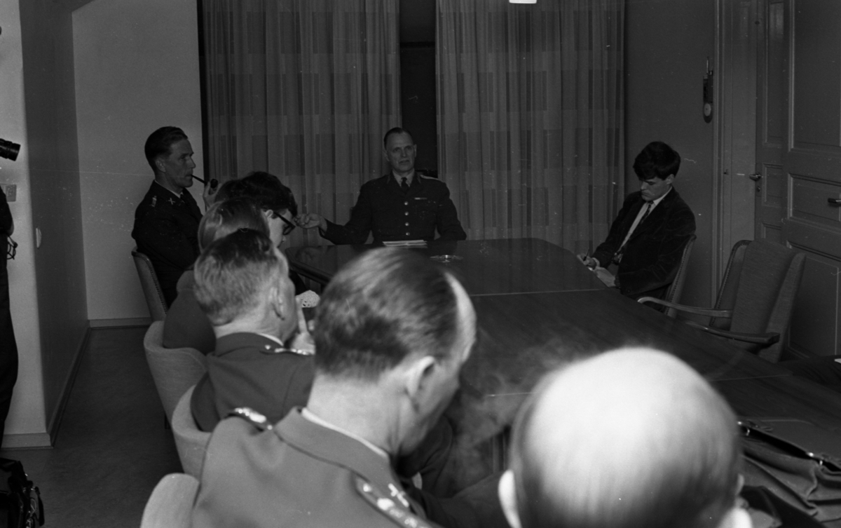 Generalen på kortändan är generalmajor Stig Löfgren, militärbefälhavaren för Bergslagens militärområde åren 1967-1973.